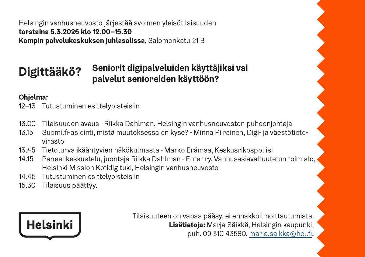 Digittääkö? Vanhusneuvoston yleisötilaisuus pe 5.3. klo 12 Kampin palvelutalossa