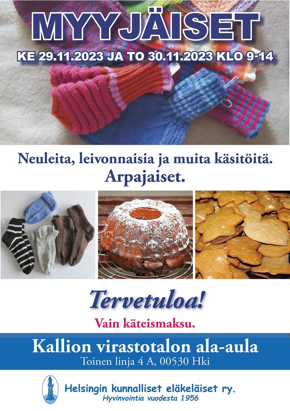 Käsityökerhon myyjäisistä löydät sisältöä pehmeisiin paketteihin ja suuhunpantavaa. Ostoksille kannattaa tulla molempina päivinä klo 9 alkaen ja mukana käteistä rahaa, koska yhdistyksellä ei ole kortin lukulaitetta (pankki perii provision)