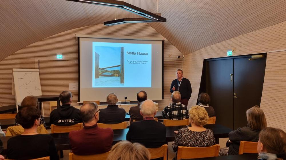 Johtava tutkija Lauri Sikanen esitteli meille Luken toimintaa ja kertoi Metla talon historiasta.