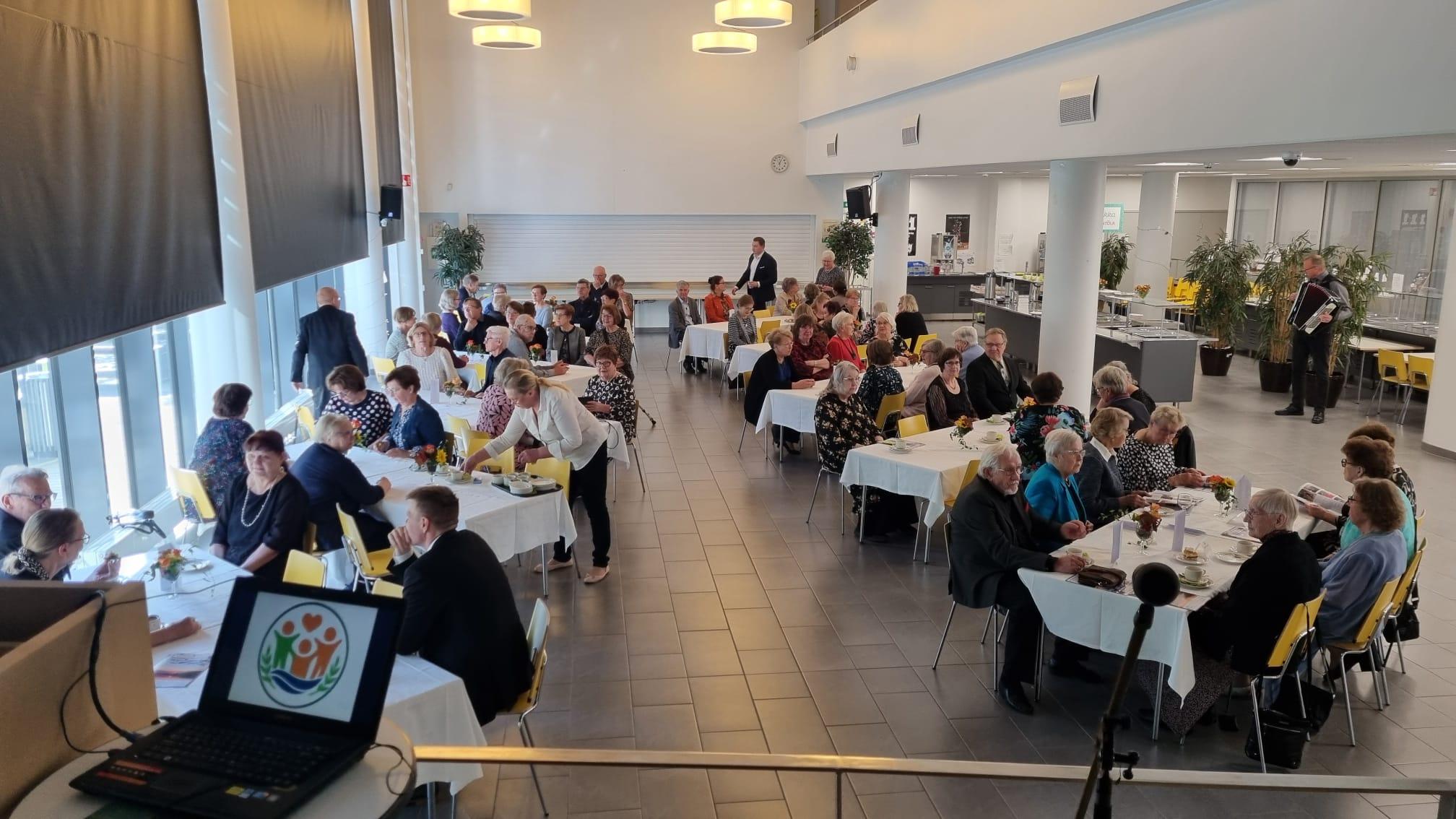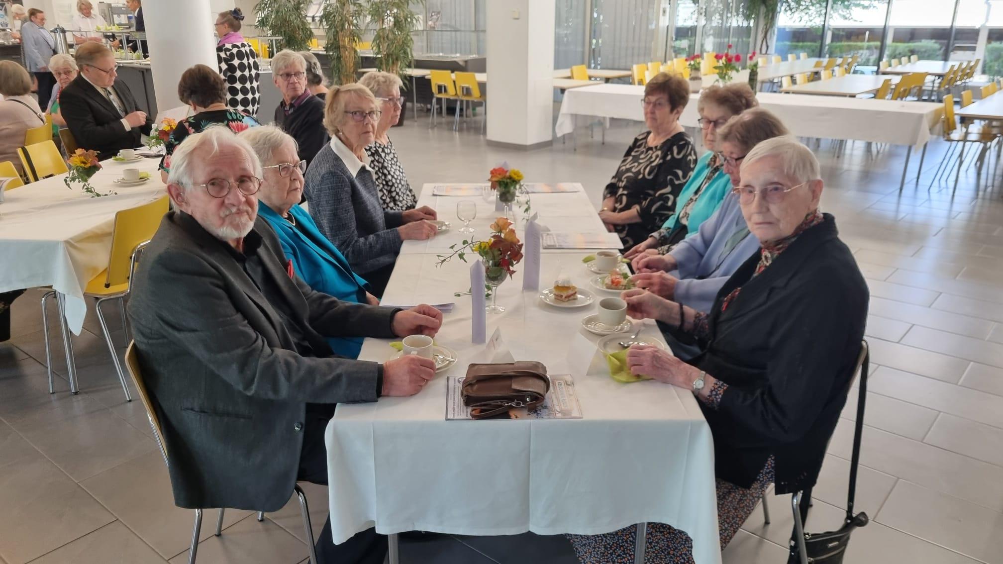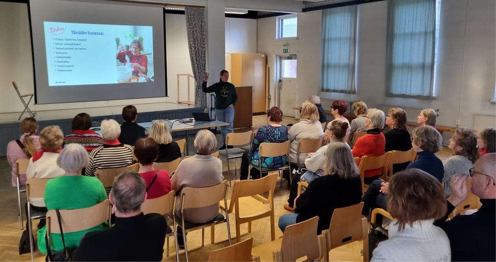 Tiistaina kokoonnuimme aamupuuron ääreen viettämään aikaa yhdessä. Emäntämme Tuula oli keittänyt ison kattilallisen neljän viljan puuroa, jonka kanssa sai marjoja. Meille gluteenittomille oli tarjolla oikein kupsakkaa kaurapuuroa. Jälkiruokana oli kahvit ja Runebergin kääretorttua! Runsaan puuroaterian jälkeen siirryimme salin puolelle kuuntelemaan Pohjois-Karjalan Marttojen luentoa Kotivarasta. Aamupuurolla oli 37 osallistujaa.