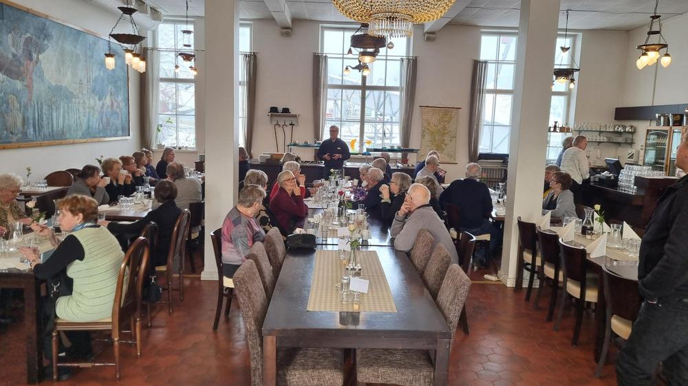 Teatteriesityksen jälkeen kävimme myöhäisellä lounaalla Kaks ruusua ravintolassa. Matkalla oli 42 osallistujaa.