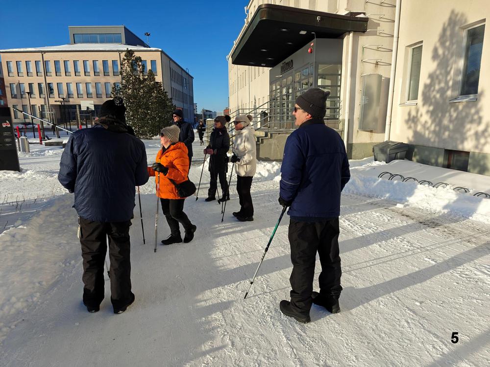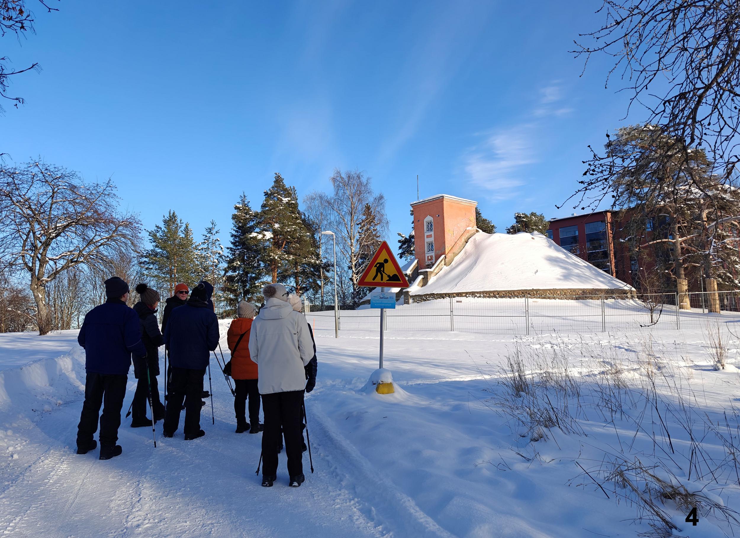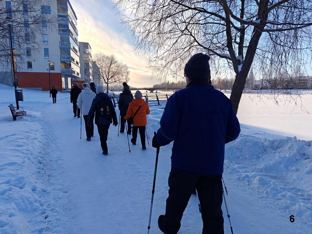 JAE Ulkoilijat on viime syksyn ja alkutalven aikana kierrellyt Joensuun ja lähiympäristön ulkoilupaikkoja sekä käynyt Pyhäselän jääpoluilla. Tiistaina 24.2. tehtiin Heikin suunnittelema ja vetämä kaupunkikierros. Lähtö tutulta kokoontumispaikalta, kirkon parkki, edeten Ylisoutajansillan kautta Penttilän puolelle. Käytiin ihailemassa Karjalankadun kiertoliittymää ja sieltä edelleen Pielisensuun kirkolle. Kirkolta kävelimme vanhalle vesitornille ja sitten retken pääkohteelle uudelle vesitornille, jossa Martti Terhon avustamana otti ryhmäkuvan. Vesitornilta laskeuduimme Riverian kampukselle ja loppumatka rantareittiä kirkon parkkipaikalle. Martilla oli paljon kerrottavana muistoja reitin varrelta ja kohteista, samoin kaikilla osallistujilla. Etenkin me paluumuuttajat olemme näillä retkillä kerranneet muistoja muinaisesta Joensuustamme ja oppineet paljon uutta nykyisestä Joensuusta ja lähiympäristöstä kanssakävelijöidemme opastamina.