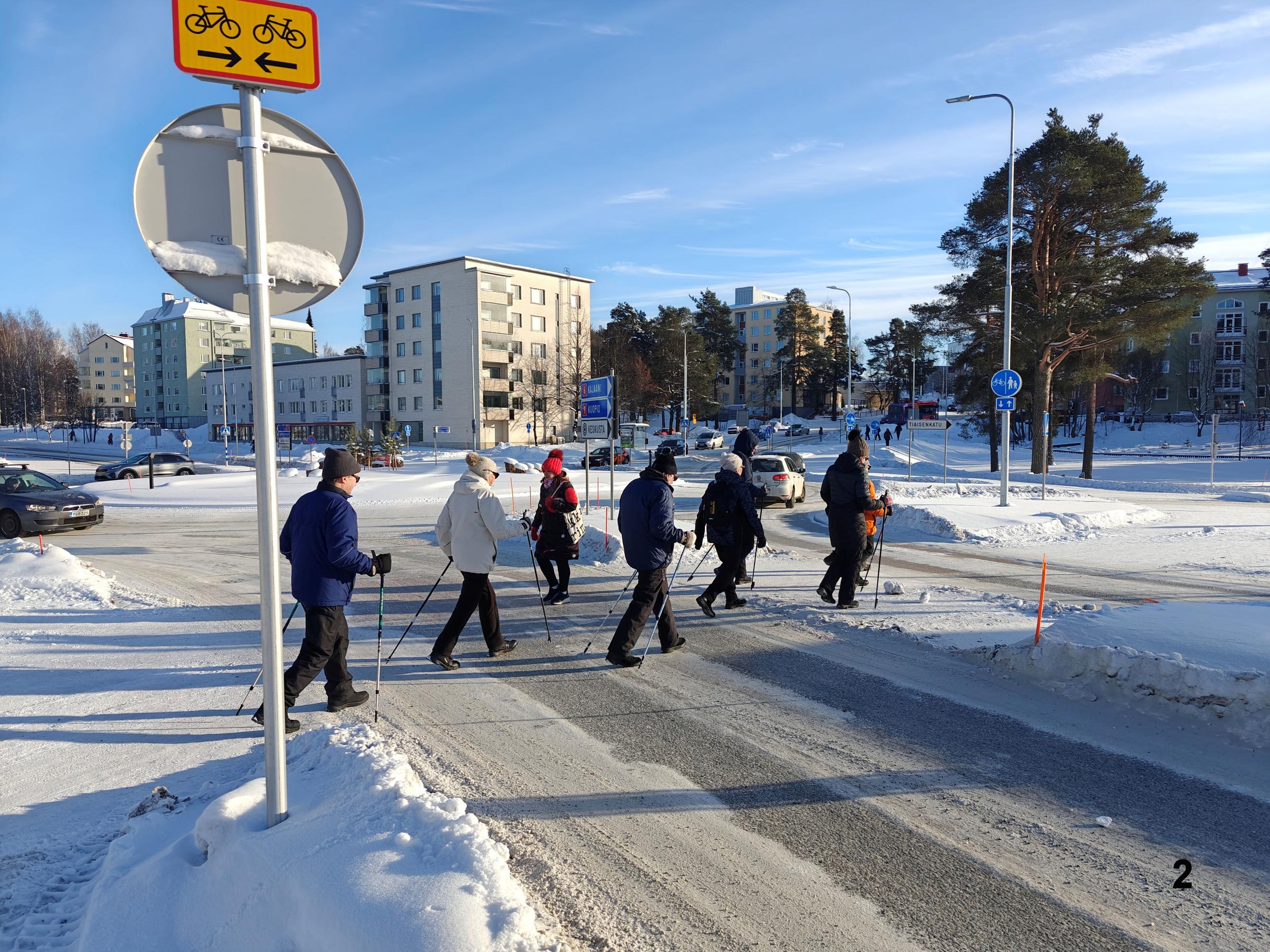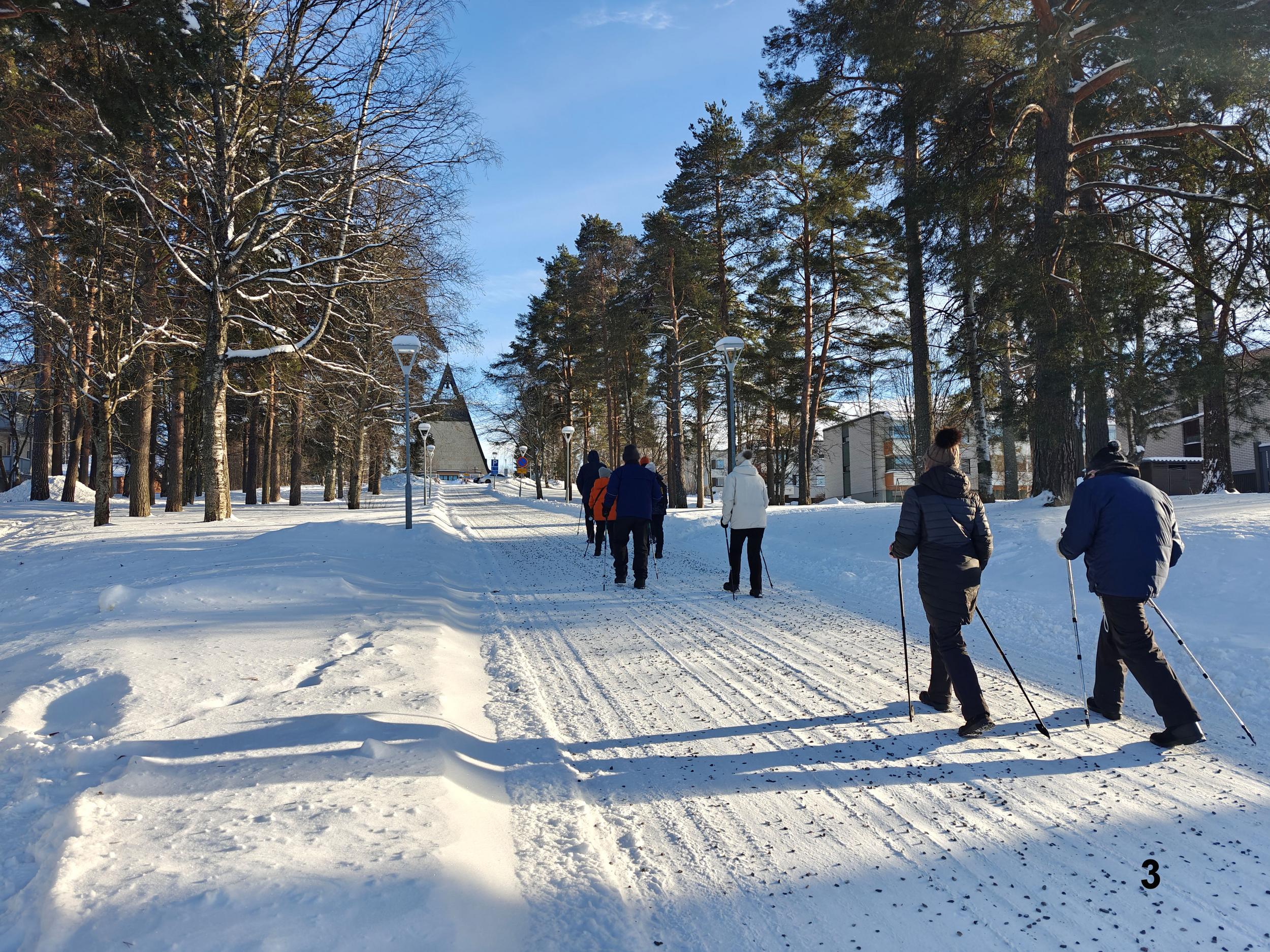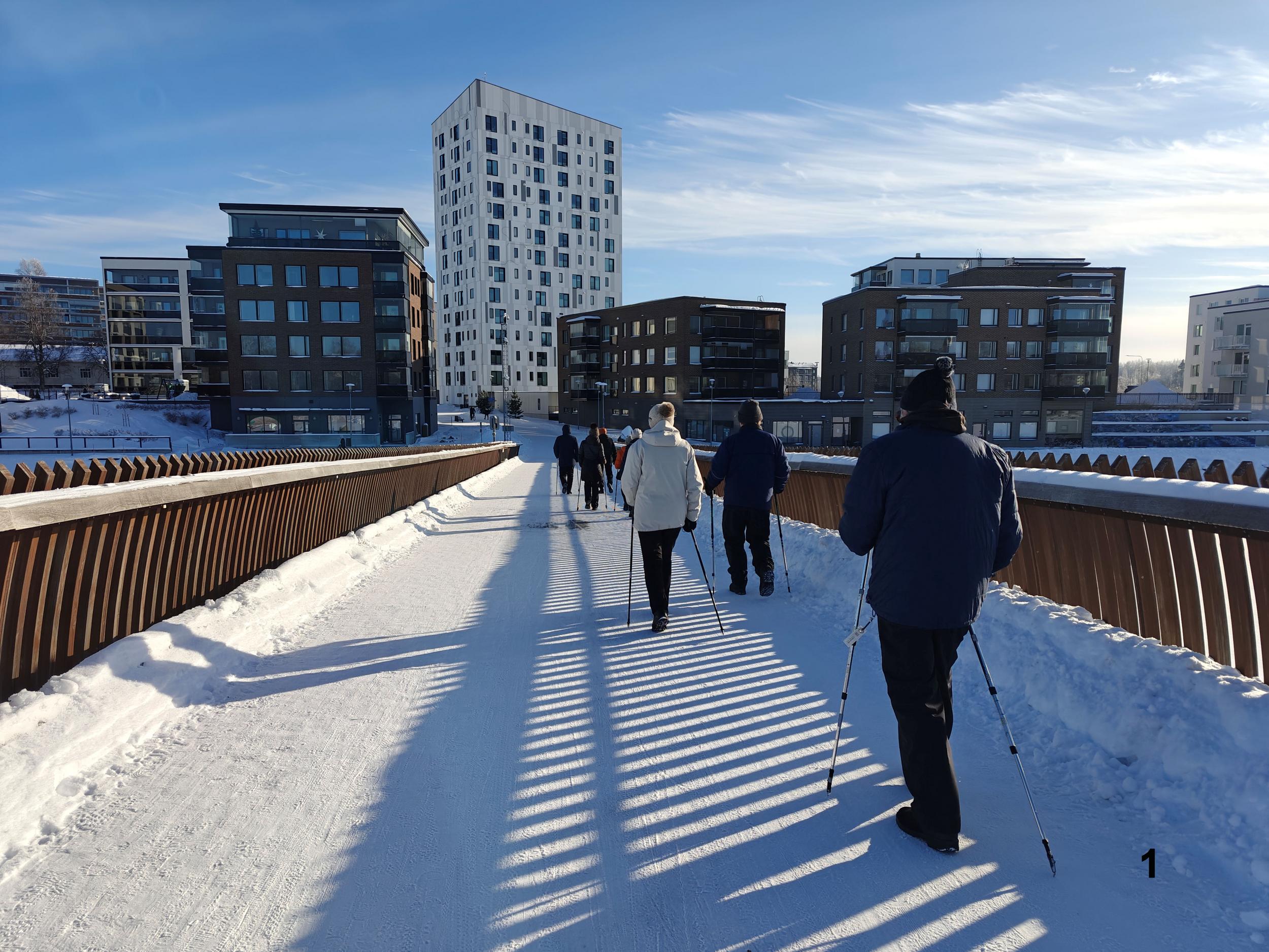 JAE Ulkoilijat on viime syksyn ja alkutalven aikana kierrellyt Joensuun ja lähiympäristön ulkoilupaikkoja sekä käynyt Pyhäselän jääpoluilla. Tiistaina 24.2. tehtiin Heikin suunnittelema ja vetämä kaupunkikierros. Lähtö tutulta kokoontumispaikalta, kirkon parkki, edeten Ylisoutajansillan kautta Penttilän puolelle. Käytiin ihailemassa Karjalankadun kiertoliittymää ja sieltä edelleen Pielisensuun kirkolle. Kirkolta kävelimme vanhalle vesitornille ja sitten retken pääkohteelle uudelle vesitornille, jossa Martti Terhon avustamana otti ryhmäkuvan. Vesitornilta laskeuduimme Riverian kampukselle ja loppumatka rantareittiä kirkon parkkipaikalle. Martilla oli paljon kerrottavana muistoja reitin varrelta ja kohteista, samoin kaikilla osallistujilla. Etenkin me paluumuuttajat olemme näillä retkillä kerranneet muistoja muinaisesta Joensuustamme ja oppineet paljon uutta nykyisestä Joensuusta ja lähiympäristöstä kanssakävelijöidemme opastamina.