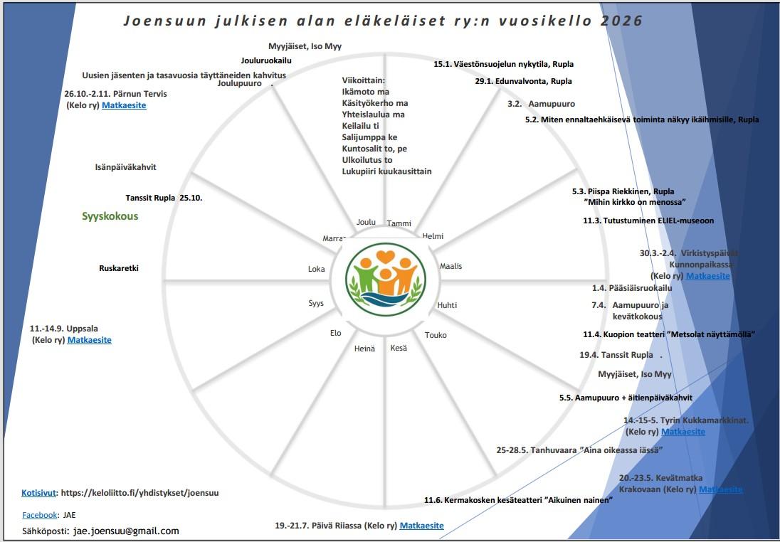JOENSUUN JULKISEN ALAN ELÄKELÄISET JAE RY Yleistä Joensuun julkisen alan eläkeläiset JAE ry on poliittisesti ja uskonnollisesti sitoutumaton ammattiyhdistyspohjainen eläkeläisjärjestö. Yhdistys on…